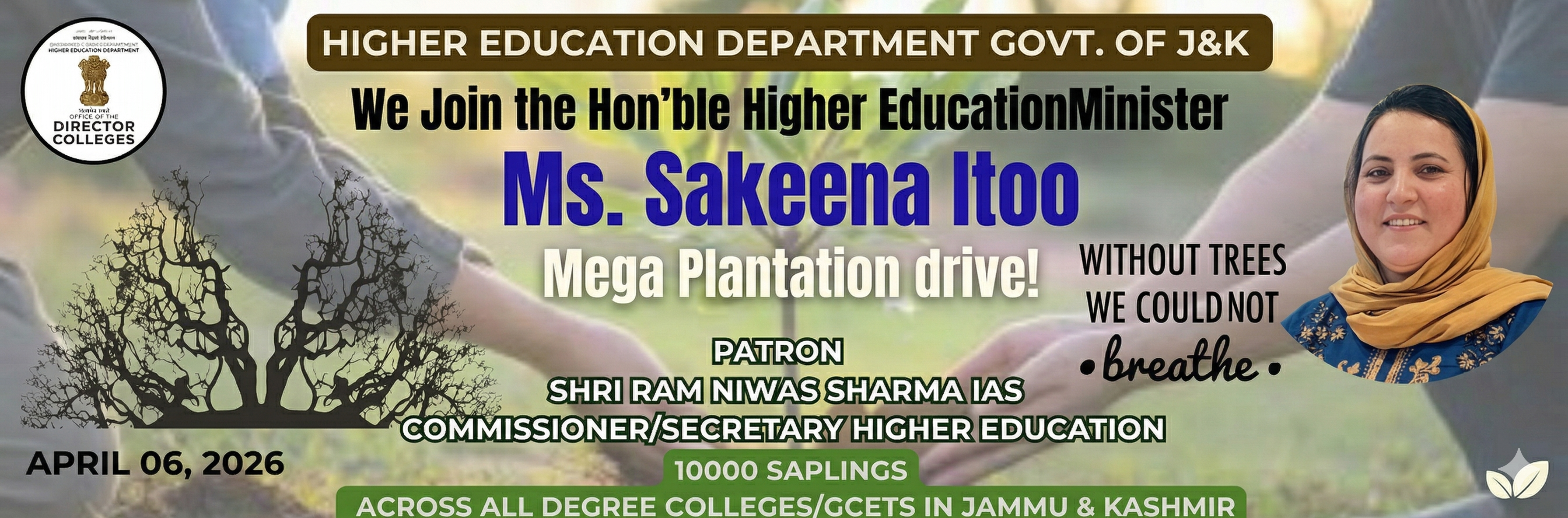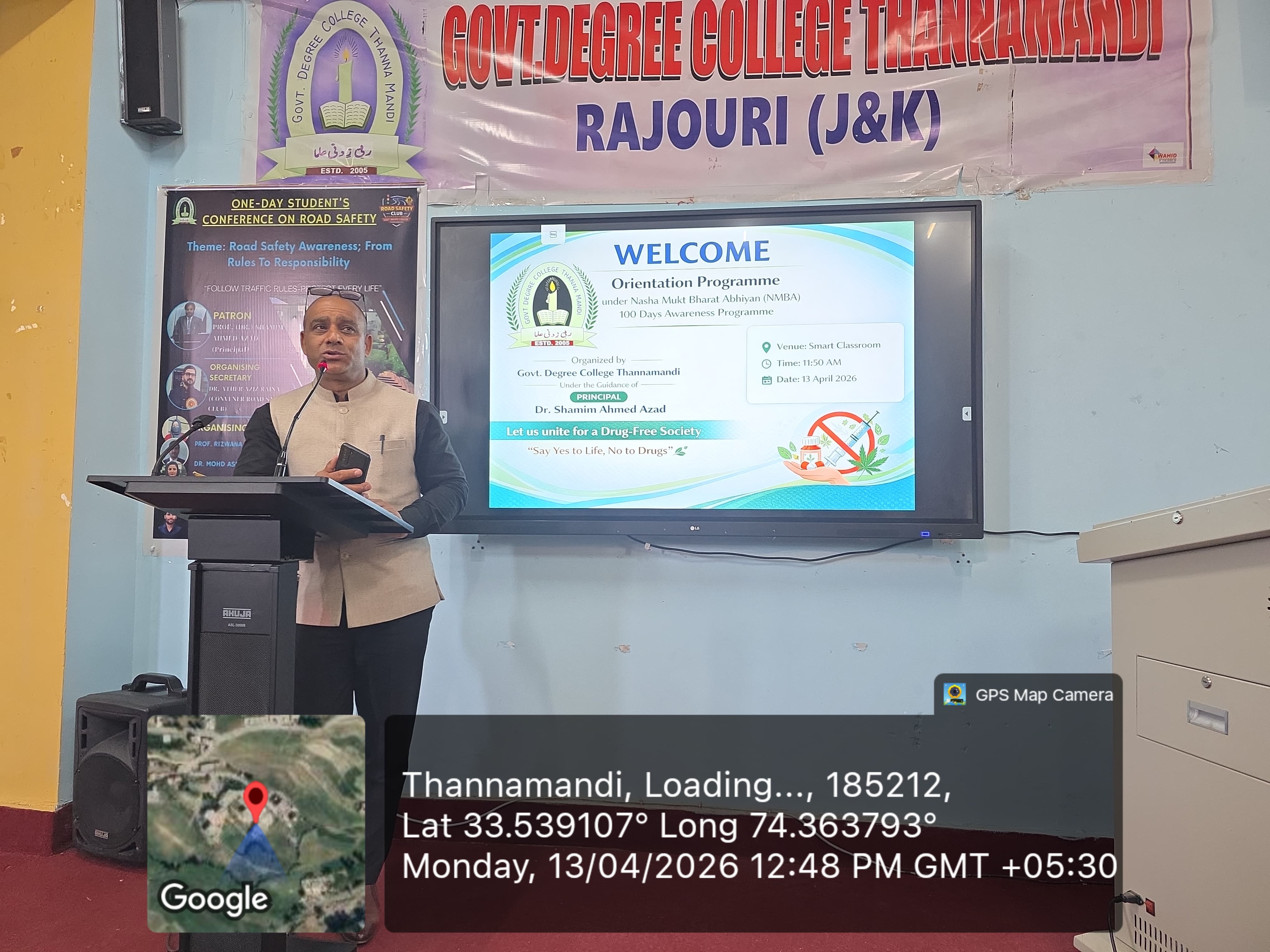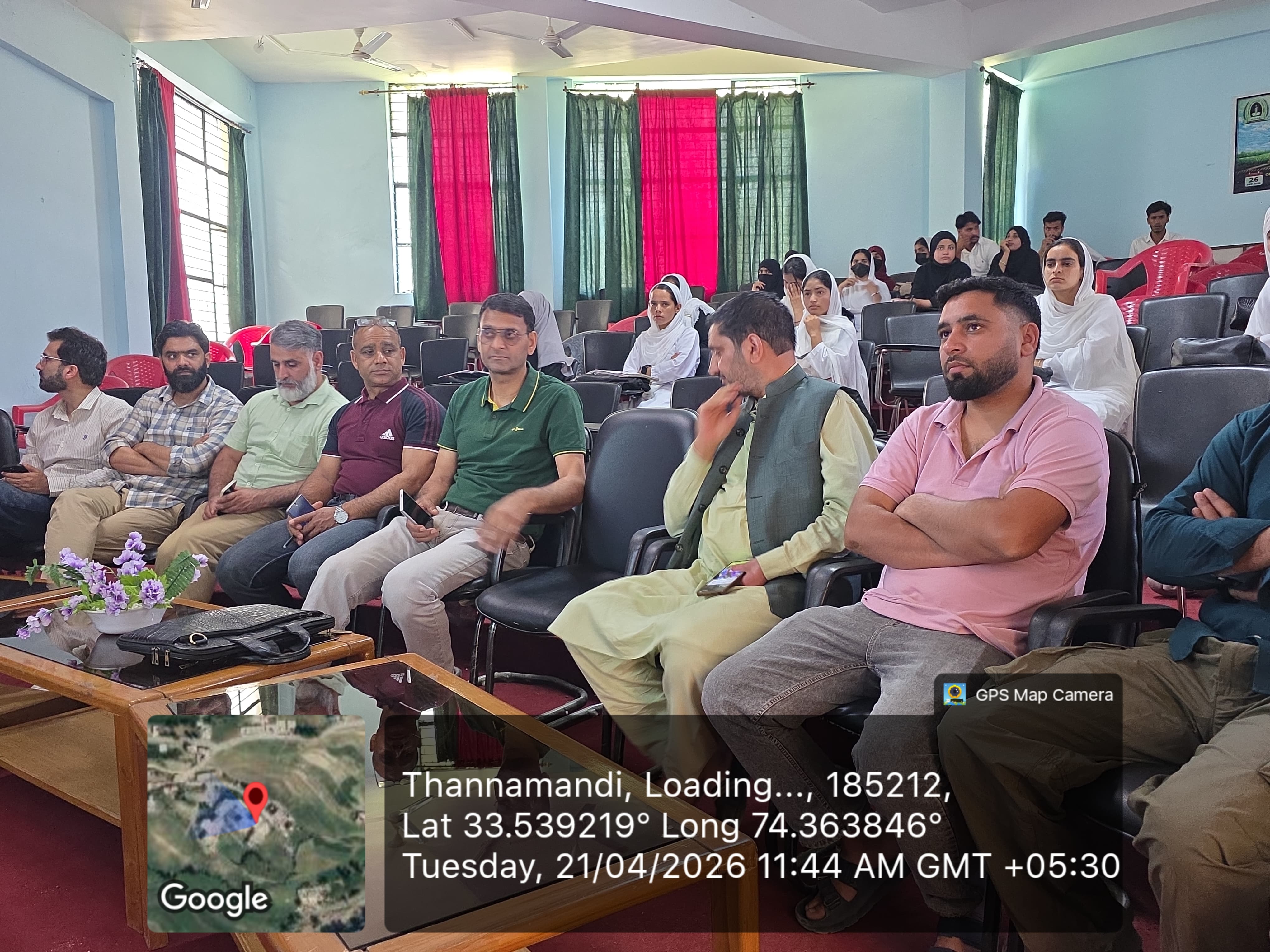 Welcome to Government Degree College Thannamandi, Rajouri, an esteemed institution committed to academic excellence, holistic development, and the empowerment of young minds in the Union Territory of Jammu and Kashmir. In 2010, the College got affiliation with UGC under section 2(F) and 12(B). It has also been granted permanent affiliation with University of Jammu and NAAC Accreditation with B-Grade CGPA 1.96. Keeping in view the vision of the college (wedded to quality education and high moral values), efforts are being made to produce upright and competent individuals so that they can fit themselves in the present transparent, competitive, technical, digital era of the modern world. At Government Degree College Thannamandi, we strive to create a vibrant learning environment that nurtures intellectual curiosity, critical thinking, and ethical values among students. Our college stands as a center of quality higher education in the Pir Panjal region, dedicated to shaping responsible citizens and future leaders through innovative teaching, co-curricular engagement, and community outreach. We believe that education is not merely the acquisition of knowledge but the overall development of personality, character, and social responsibility. The college has established the Science Club, Literary Club and also has college magazine “The Flight” where students are being provided opportunities to show their hidden talent and display their creativity in addition to regular publication of college Newsletter “The Shahdara” and Admission Brochure. College has also established the Women Development Cell and an Internal Complaint Committee to provide equal opportunities to female students and faculty of the college for progress. The college continuously endeavors to provide a supportive academic atmosphere with dedicated faculty, well-structured academic programmes, and a range of extension activities through NSS, NCC, cultural, literary, and sports initiatives. Our institution places special emphasis on inclusive education, skill development, environmental awareness, and the promotion of national values in alignment with the vision of higher education in the Union Territory of Jammu and Kashmir. We encourage our students to participate actively in academic pursuits, research, community service, and extracurricular activities to realize their full potential. I am proud of the achievements of our students, faculty, and staff who work tirelessly to uphold the academic standards and reputation of the college. Together, we are committed to fostering a culture of discipline, innovation, and excellence. I extend my best wishes to all students and stakeholders and invite you to be a part of the academic journey of Government Degree College Thannamandi, Rajouri, as we continue to strive for excellence in higher education and nation-building. |